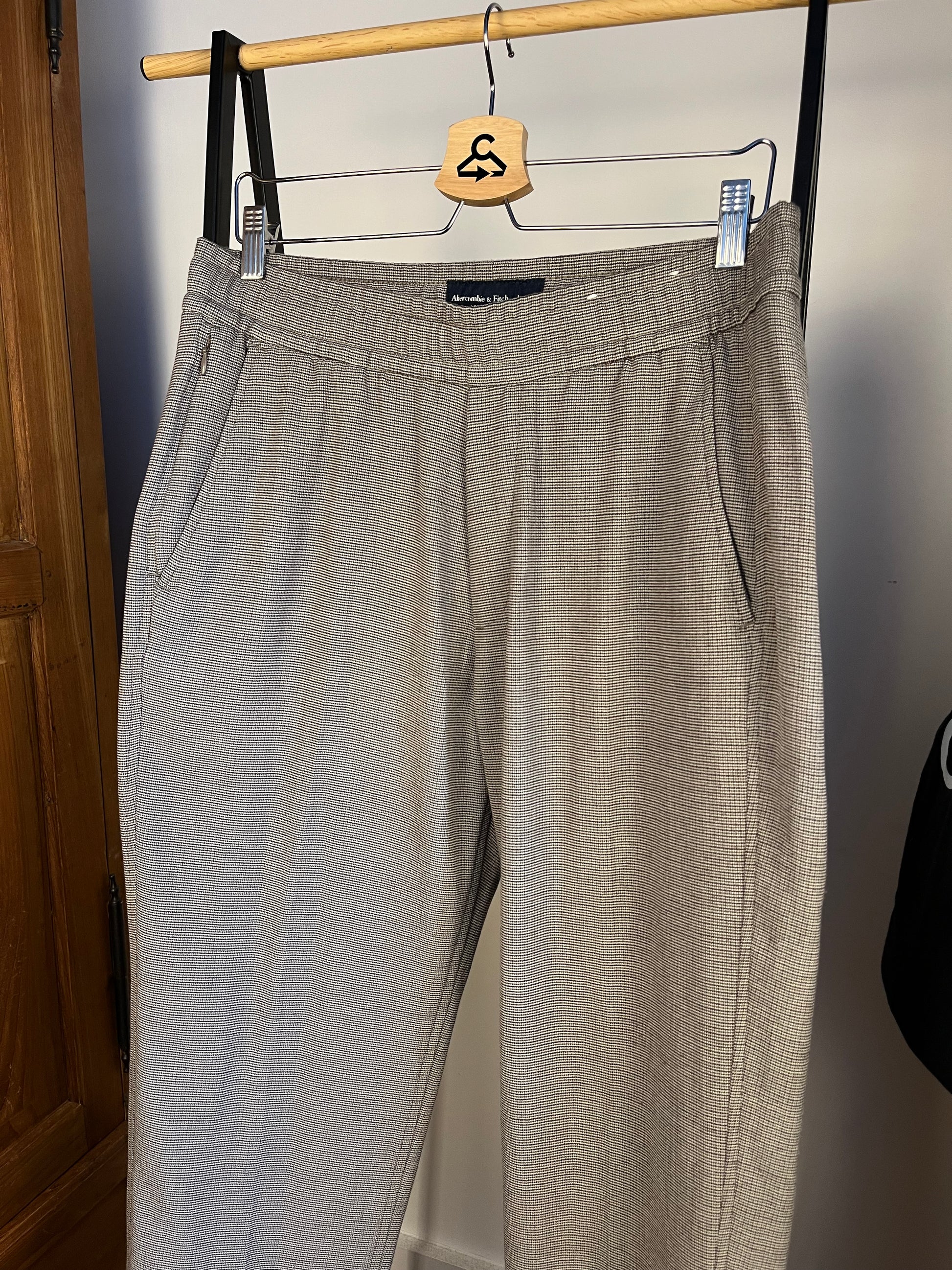 Abercrombie Brown Checked Pattern Trousers - Medium